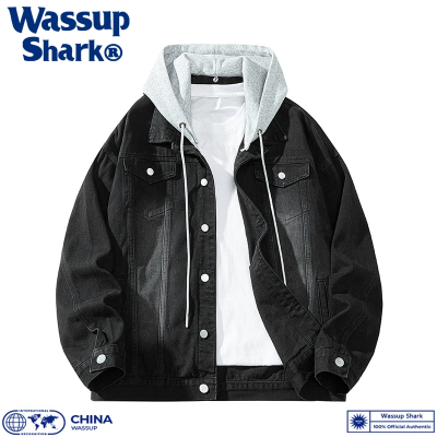 首页 > 日常服饰 > Wassup Shark美式连帽牛仔外套男春秋季复古工装夹克百搭翻领上衣