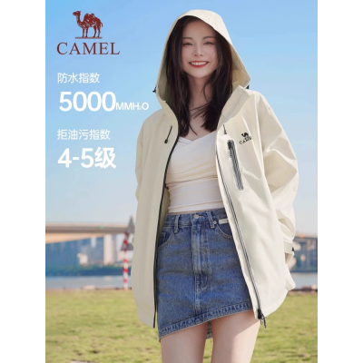 首页 > 日常服饰 > 骆驼女装夹克2025春秋新款白色宽松连帽短外套女防风休闲外套男女